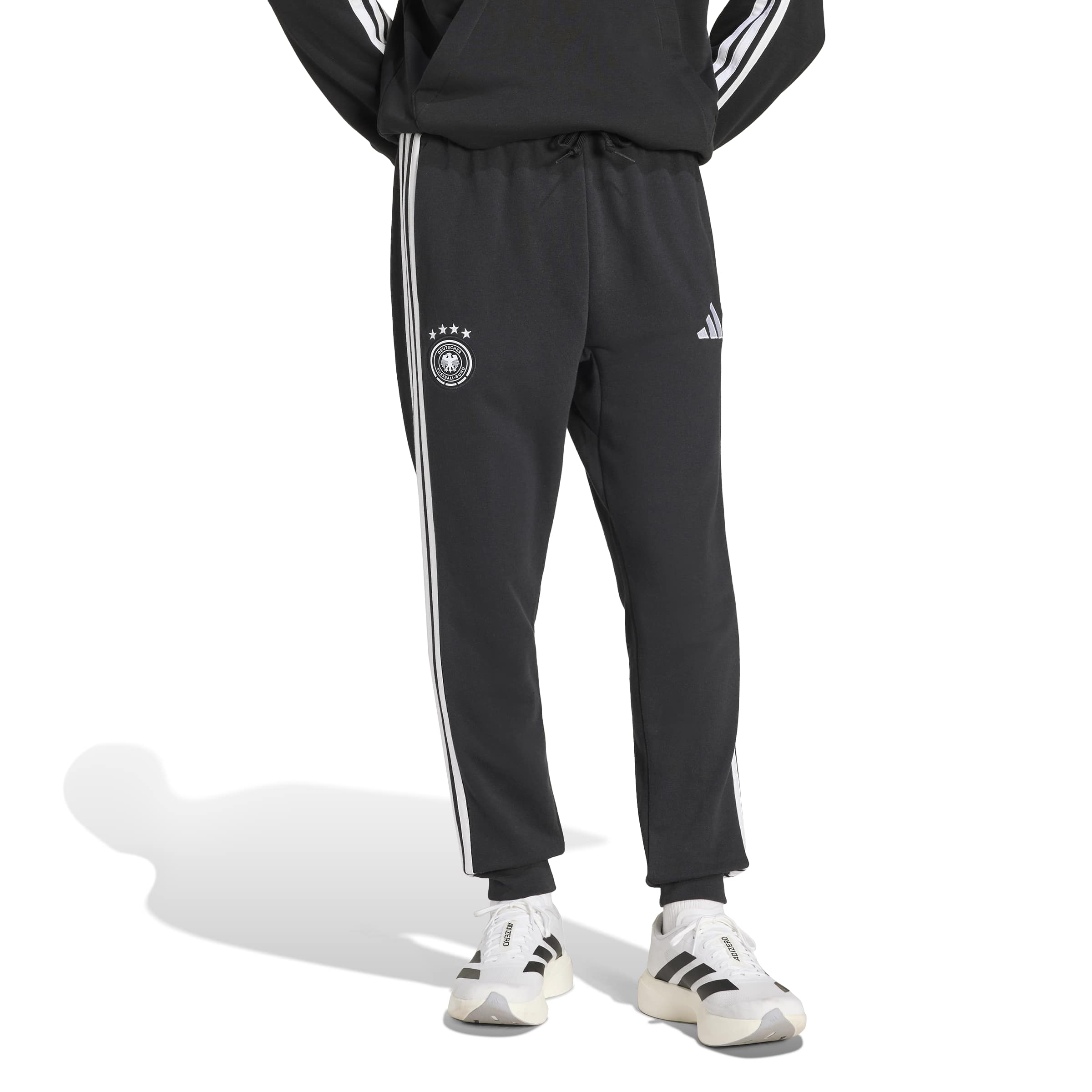 Die Deutschland DNA Hose vereint modernes Design mit Komfort im Alltag. Mit ihrer trendigen Passform und den ausgefeilten Details ist sie für Fußballfans gedacht, die einen klaren und vielseitig tragbaren Look schätzen. Diese Trainingshose aus French Terry fühlt sich weich an und sorgt dafür, dass du dich wohlfühlst, egal ob du auf der Tribüne mitfieberst oder einen entspannten Tag im Freien verbringst. Der Kordelzugverschluss bietet einen sicheren Sitz, während der mittelhohe Bund für Komfort und Bewegungsfreiheit sorgt. Mit dem kultigen Performance Logo und den 3-Streifen bezeugt diese Trainingshose stolz deine Liebe zum Fußball. Ganz gleich, ob du sie mit einem Fußballtrikot oder einem lässigen T-Shirt kombinierst, sie sind ist Must-have wenn es um lässige und dennoch stylishe Outfits geht.