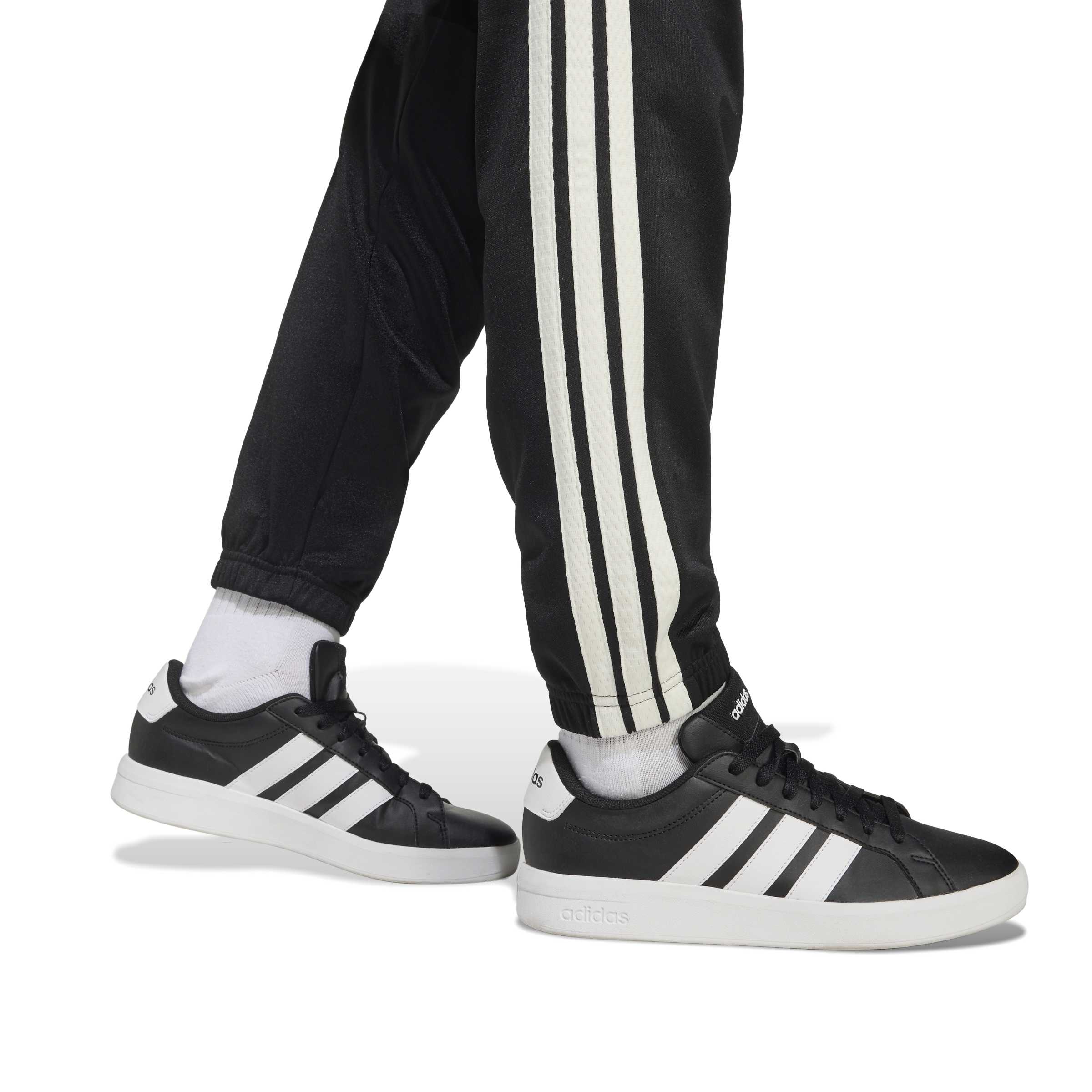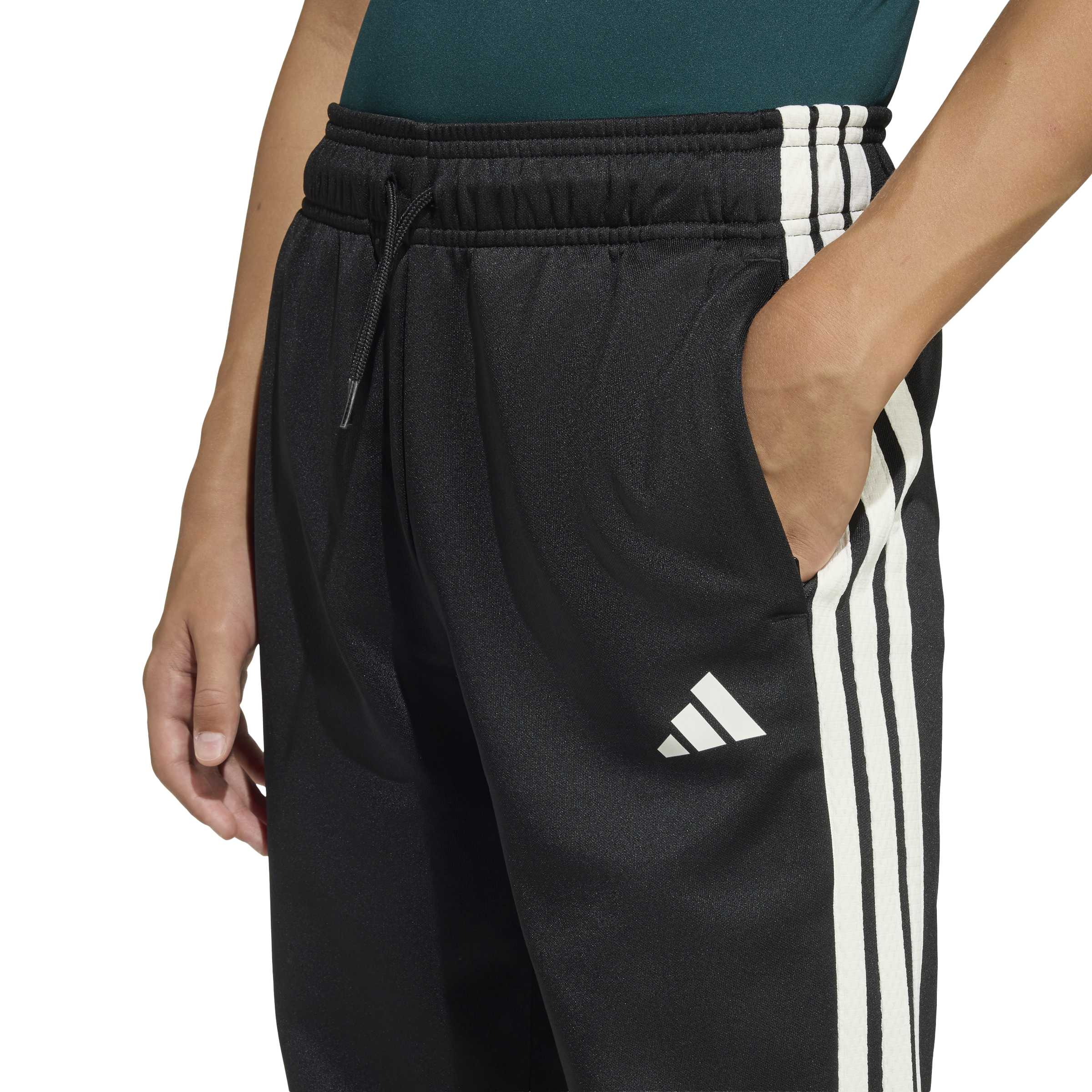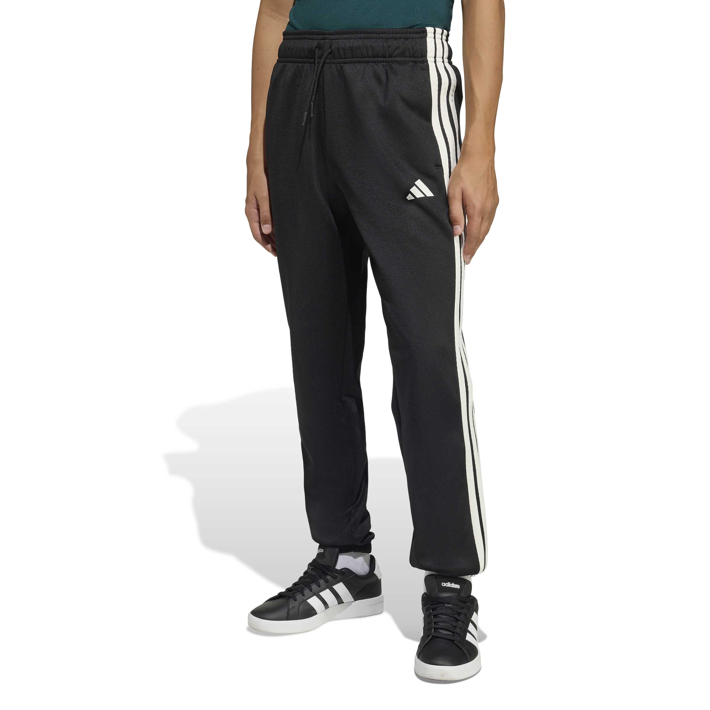 Die Stadium-Trainingshose ist so gemacht, dass sie den coolen Spirit der Sportkultur einfängt. Inspiriert von der Energie und Kreativität junger Fans, verbinden diese Hosen modernen Stil mit zeitlosen Sportswear-Elementen. Egal, ob sie mit Freunden Sport machen oder einfach nur einen entspannten Tag draußen verbringen ? mit dieser Hose sind die Kleinen im typischen adidas Stil unterwegs. Das Interlock-Strickmaterial ist strapazierfähig und fühlt sich weich an, sodass sie sich sowohl für aktive als auch für entspannte Tage super bequem tragen lässt. Der reguläre Schnitt sorgt dafür, dass die Hose weder zu eng noch zu weit sitzt und die Bewegungsfreiheit nicht einschränkt. Der elastische Bund mit Kordelzug passt sich super an, und die elastischen Beinabschlüsse sorgen für einen sicheren Sitz, während die seitlichen Taschen echt praktisch sind. Die klassischen 3-Streifen an den Beinen und das 3-Streifen-Logo zeigen, dass diese Hose klassisch und hochwertig ist. Kombiniere sie mit ihren Lieblings-Sneakers von adidas und lass sie mit dieser vielseitigen, stylish Hose ihre sportliche Seite zeigen.