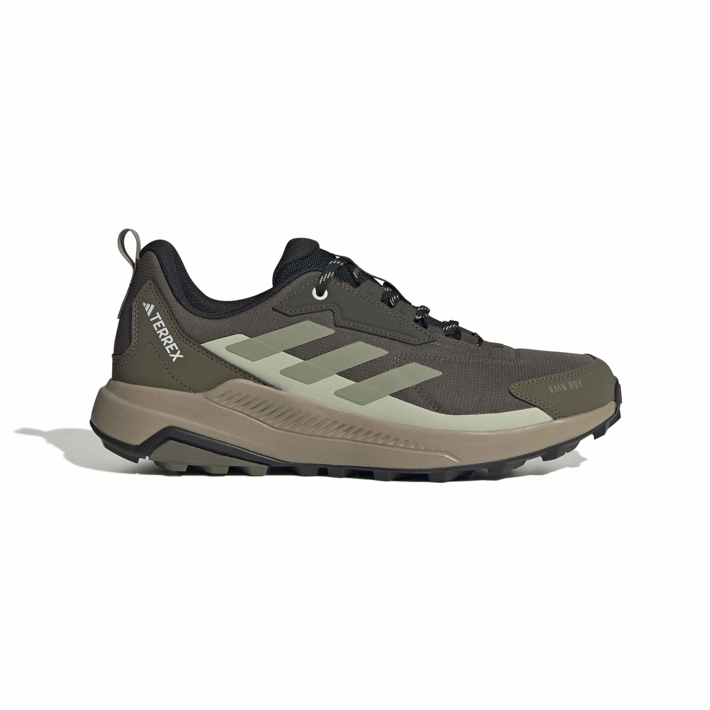 Mit diesem adidas Terrex Wanderschuh kann die Outdoor-Action losgehen. Ob hoch hinaus, flacher Trail, trockene oder nasse Bedingungen ? er macht alles mit. Der halbhohe Schaft bietet zusätzlichen Halt im Knöchelbereich und die dämpfende Zwischensohle sorgt für lang anhaltenden Tragekomfort. Bei wechselhaften Bedingungen arbeiten die RAIN.RDY Technologie und die mit dem Obermaterial verbundene Zunge Hand in Hand. Sie schützen dich vor den Elementen und halten deine Füße auch bei Nässe angenehm trocken. Unverzichtbar ist natürlich auch die Traxion Außensohle für optimalen Grip. Und damit du möglichst lange Freude an dem Schuh hast, ist er besonders strapazierfähig. Durch den Einsatz von Recyclingmaterialien können wir bereits vorhandene Gewebe und Fasern wiederverwenden und so dazu beitragen, Müll zu reduzieren. Auch erneuerbare Materialien sind ein Weg, uns weniger abhängig von nicht erneuerbaren Ressourcen zu machen. Unsere Produkte, die mit einem Mix aus recycelten und erneuerbaren Materialien hergestellt sind, bestehen zu mindestens 20 % aus diesen Materialien.