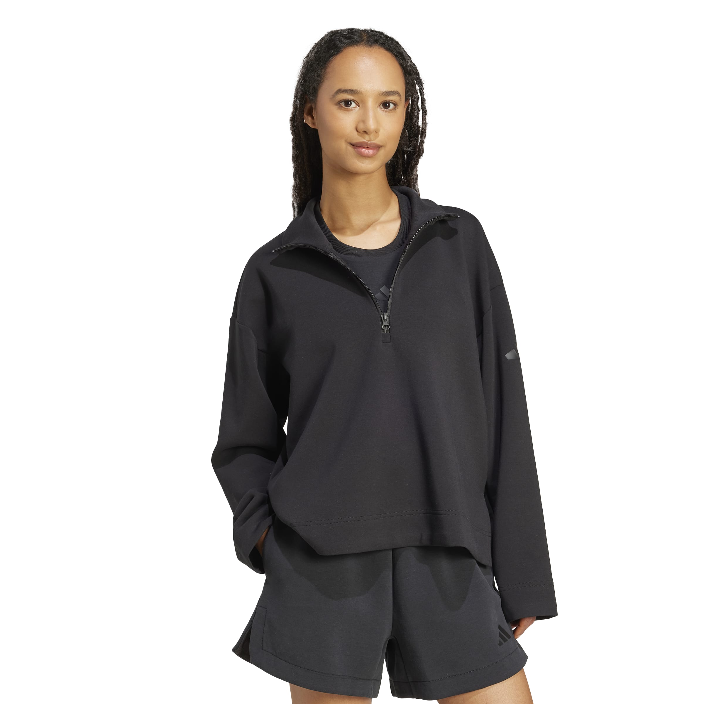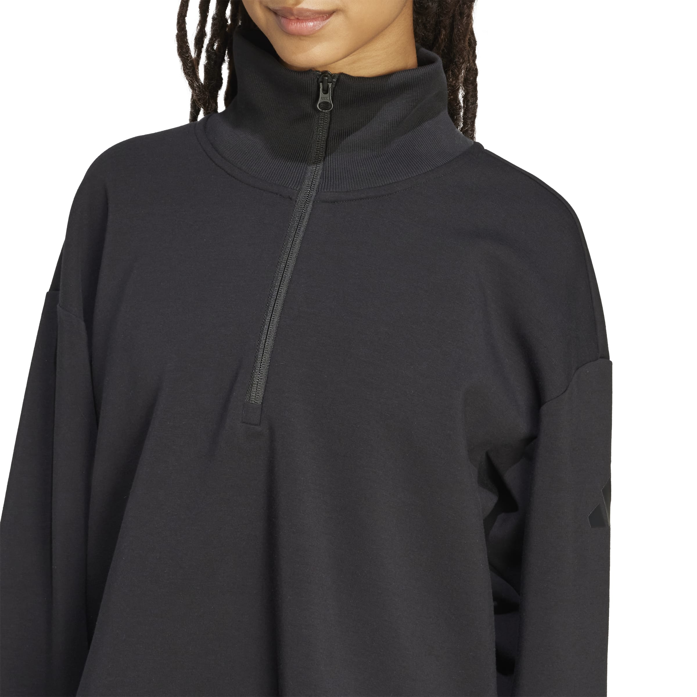Dieses Sweatshirt von adidas ist aus kuscheligem Spacer-Material gefertigt, das für ein angenehm flauschiges Gefühl angeraut ist und Modal enthält, wodurch es noch weicher wird. Fledermausärmel und offene Säume mit Schlitzen verleihen dem Modell mit Reißverschluss bis zur Brust eine lässige Form und einen stylishen Look. Egal, ob du unterwegs bist oder zu Hause bleibst, dieses Oberteil vereint Komfort mit schlichtem Stil.