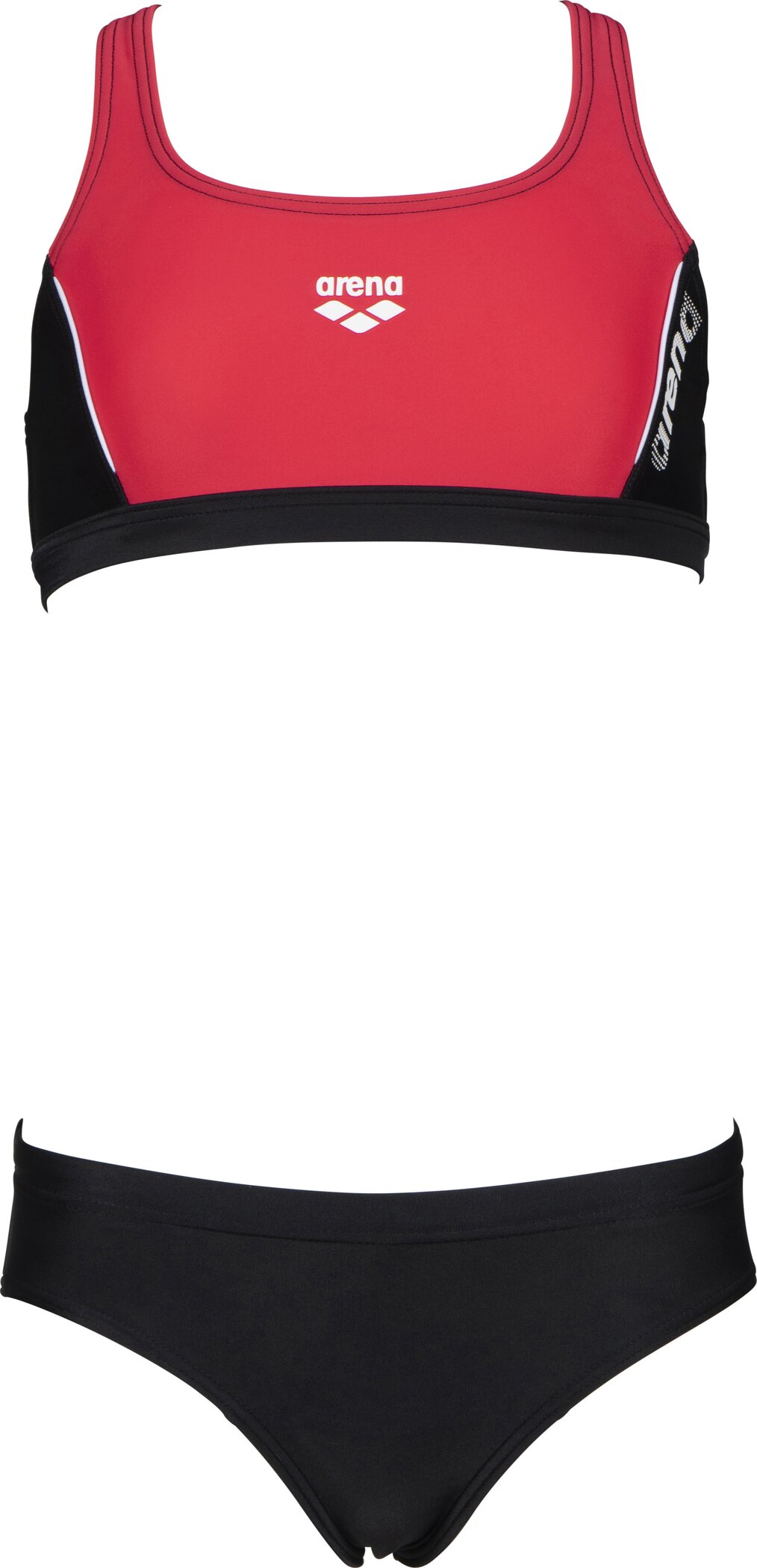 Der arena Sport Bikini Thrice für Mädchen ist ideal geeignet zum Schwimmen und für andere Aktivitäten am Pool und am Strand. Aus chlor- und salzwasserbeständigem MaxFit Material mit integriertem UV-Schutz UPF50+. Dank dem weichen Material mit Elastananteil lässt er sich leicht anziehen und bietet eine optimale, komfortable Passform. Das Oberteil mit Ringerrücken und breiten Trägern sorgt für stabilen Halt beim Schwimmen oder bei anderen Aktivitäten am Strand. Die gefütterte Bikinihose mit innenliegendem Kordelzug lässt sich optimal anpassen, für angenehmen Tragekomfort.