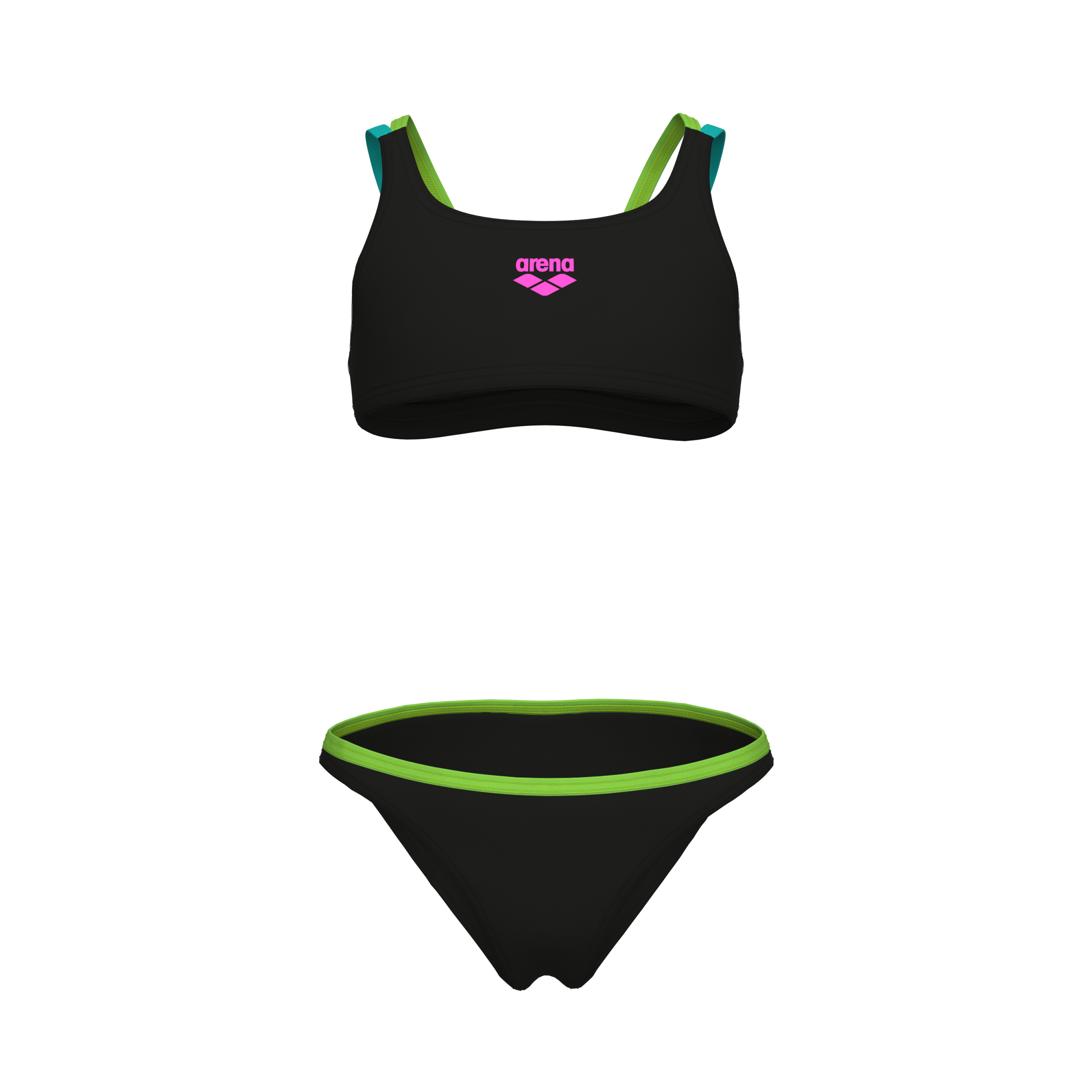 ARENA GIRL'S ARENA TWO PIECES SWIMSU BLACK-SOFT GREEN-WATER-SOFT GR