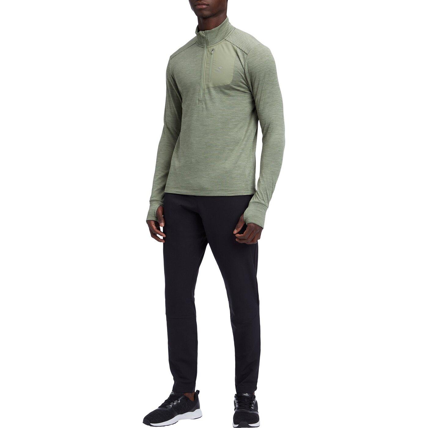 Das Longsleeve Willard aus der nachhaltigen Green Series von ENERGETICS mit halbem Reißverschluss wurde speziell für den Laufsport entwickelt und ist mit allen Details ausgestattet, die das Laufen zum absoluten Erlebnis machen. Das Oberteil aus atmungsaktivem, warmem und elastischem DRY PLUS Waffel-Fleece verfügt über einen Stehkragen und Daumenlöcher an den Ärmelbündchen, umKältebrücken sicher zu vermeiden. Die abgesetzte Reißverschlusstasche links auf der Brust bietet Platz für Smartphone und andere Utensilien.