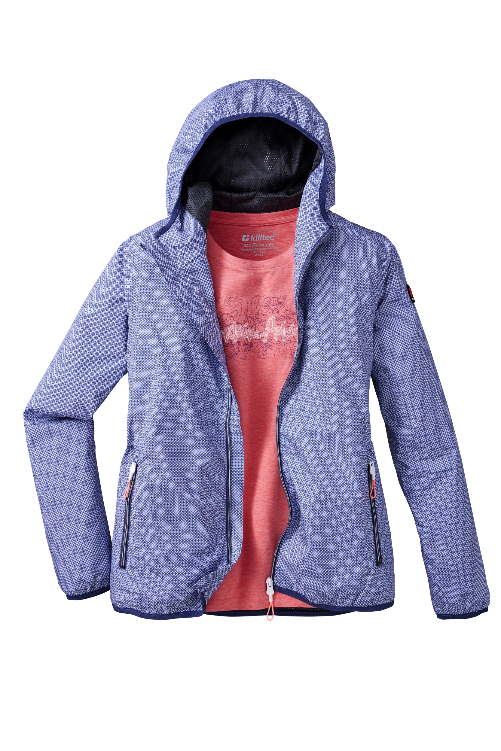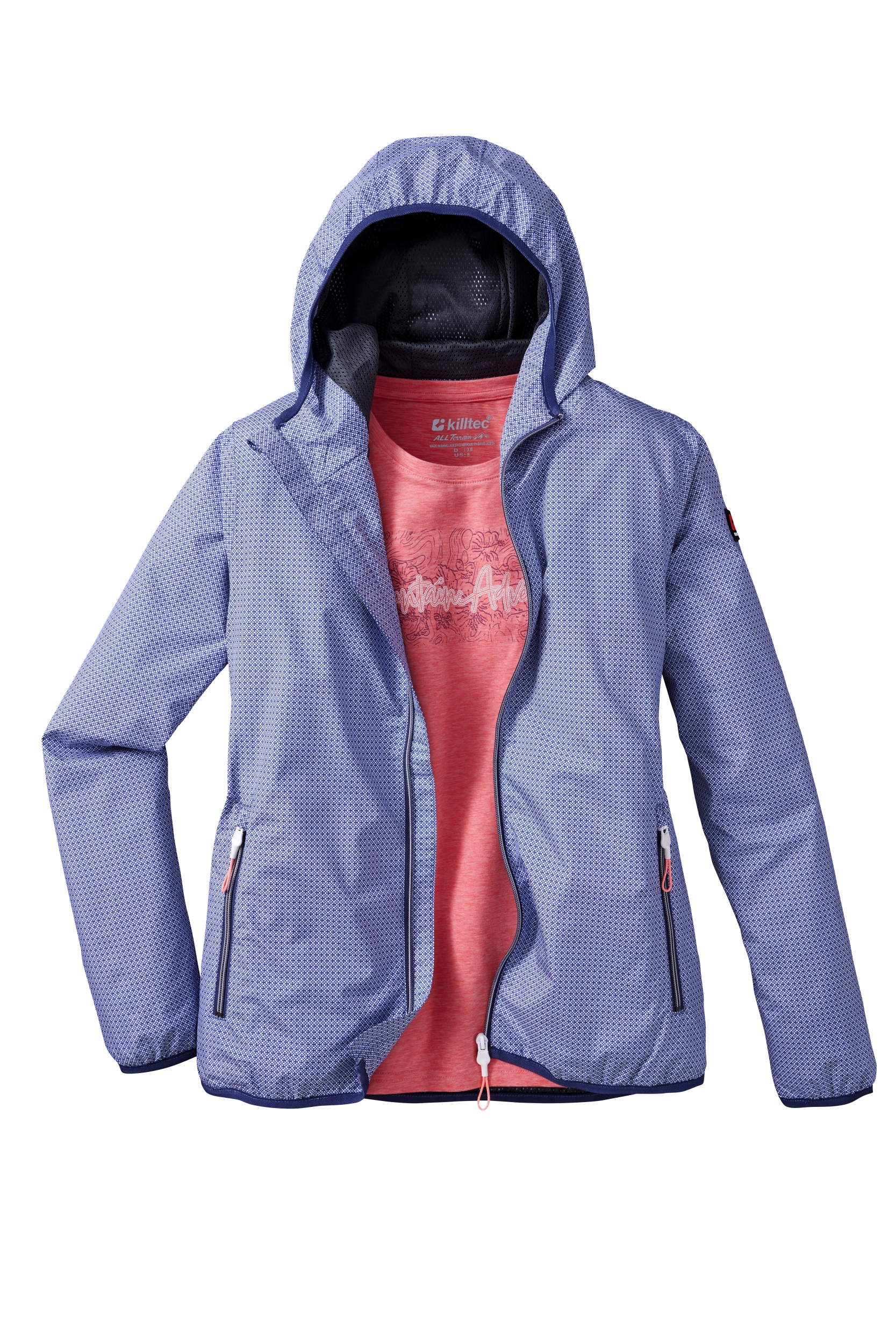 Die superleichte killtec Funktionsjacke für Damen schützt mit ihrem wind- und wasserdichten Material und ihren verschweißten Nähten zuverlässig vor Nässe und Wind (Wassersäule 10.000 mm, unser Tipp: ab und zu sollte die Jacke neu imprägniert werden). Gleichzeitig ist die Jacke atmungsaktiv mit einer Wasserdampfdurchlässigkeit von 3.000 g/m²/24h. Die Outdoorjacke hat zwei seitliche Taschen, die mit Zippern verschließbar sind. Zudem lässt sich die Jacke komplett in der eigenen Tasche verstauen und somit platzsparend transportieren. killtec liegt es besonders am Herzen, die Kollektionen nachhaltiger und zukunftsfähiger zu machen. So setzt killtec verstärkt auf verantwortungsbewusstere Herstellungsverfahren. Diese Jacke wurde daher PFAS-frei imprägniert und zum Teil aus recycelten Materialien hergestellt.