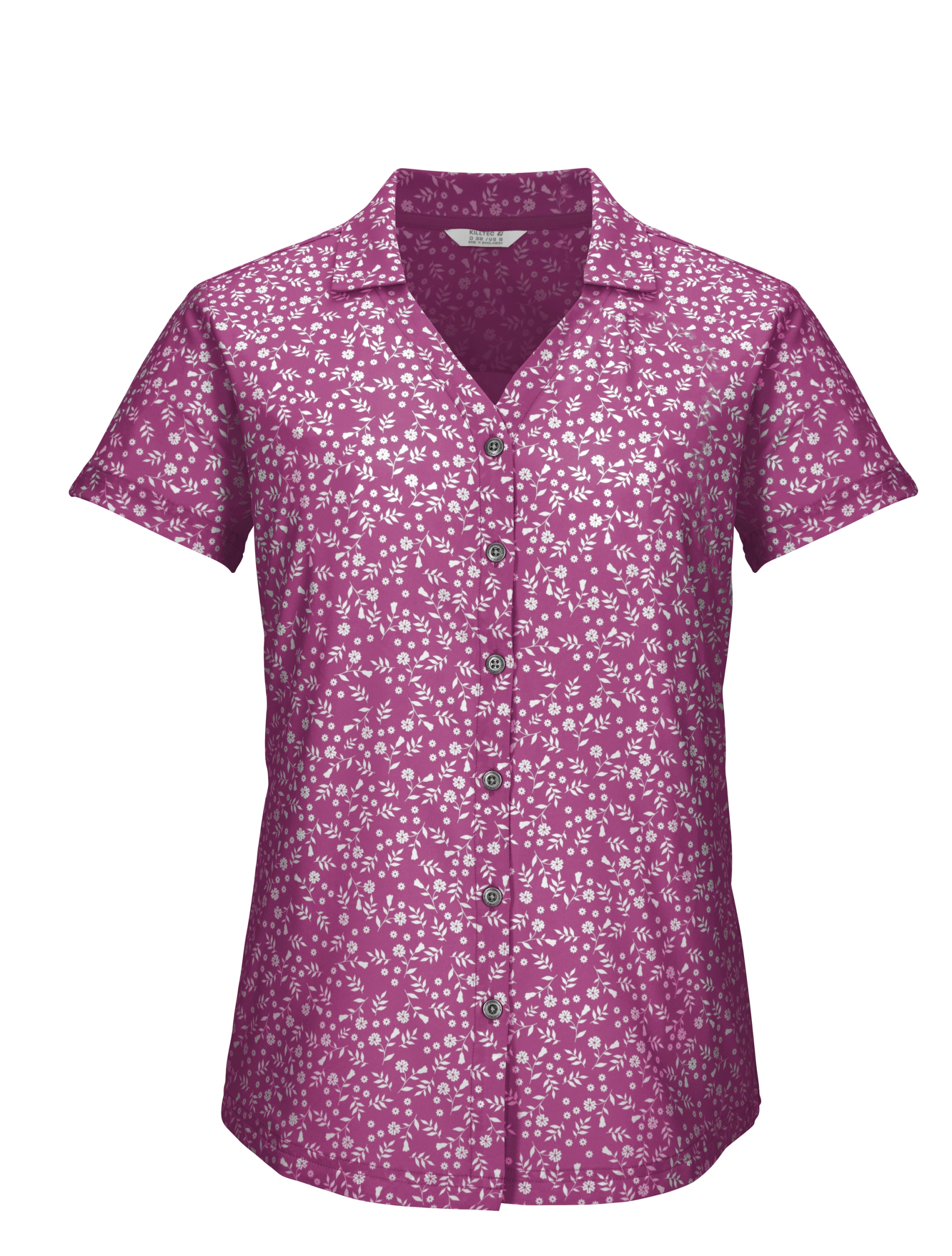 Mit der killtec Damen Funktionsbluse im floralen All-Over-Print kann der Sommer kommen. Sie ist schnelltrocknend und verspricht einen angenehmen Tragekomfort. Die Zierriegel an den kurzen Ärmeln sind ein hübsches Detail.