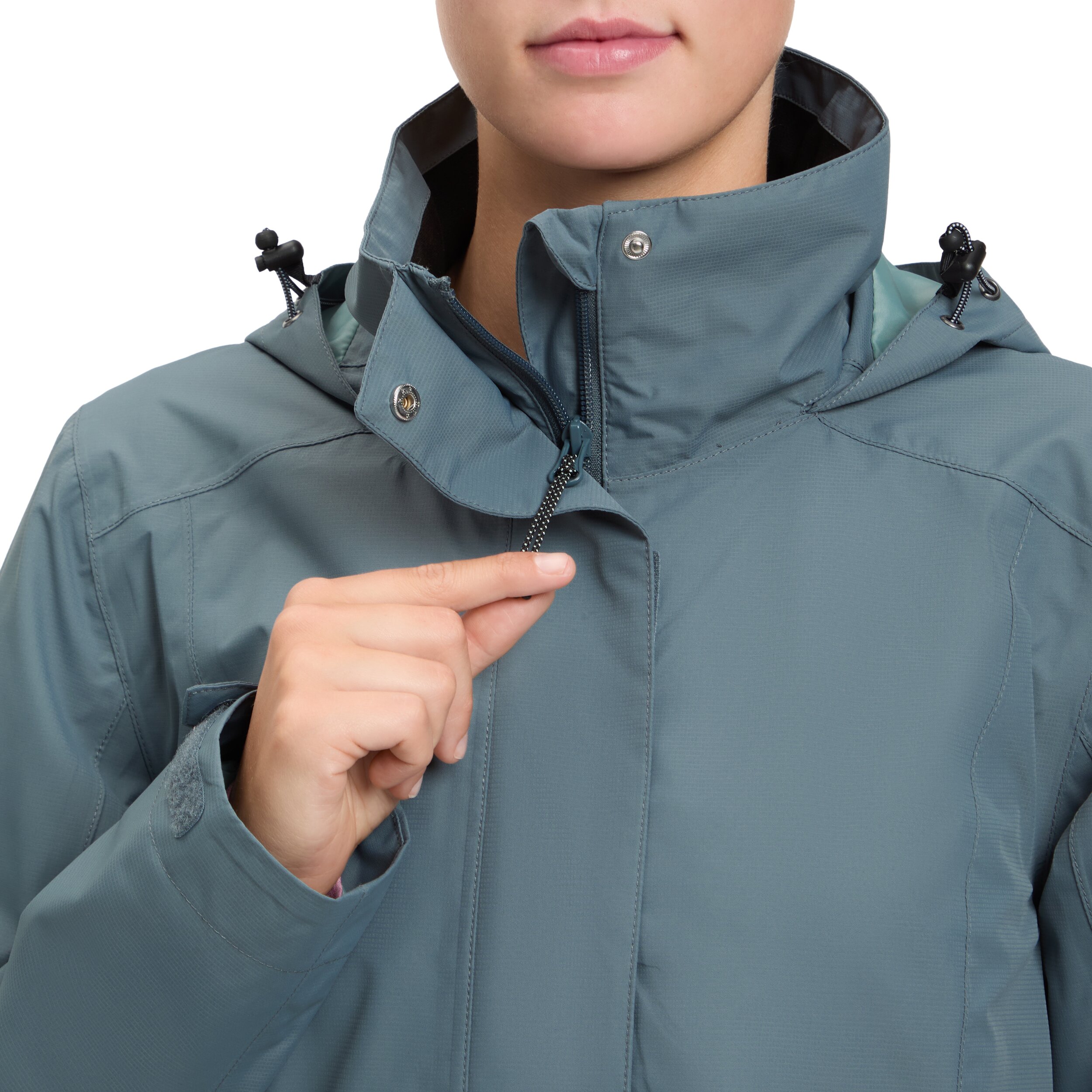 verstellbare und verstaubare Kapuze im Kragen
