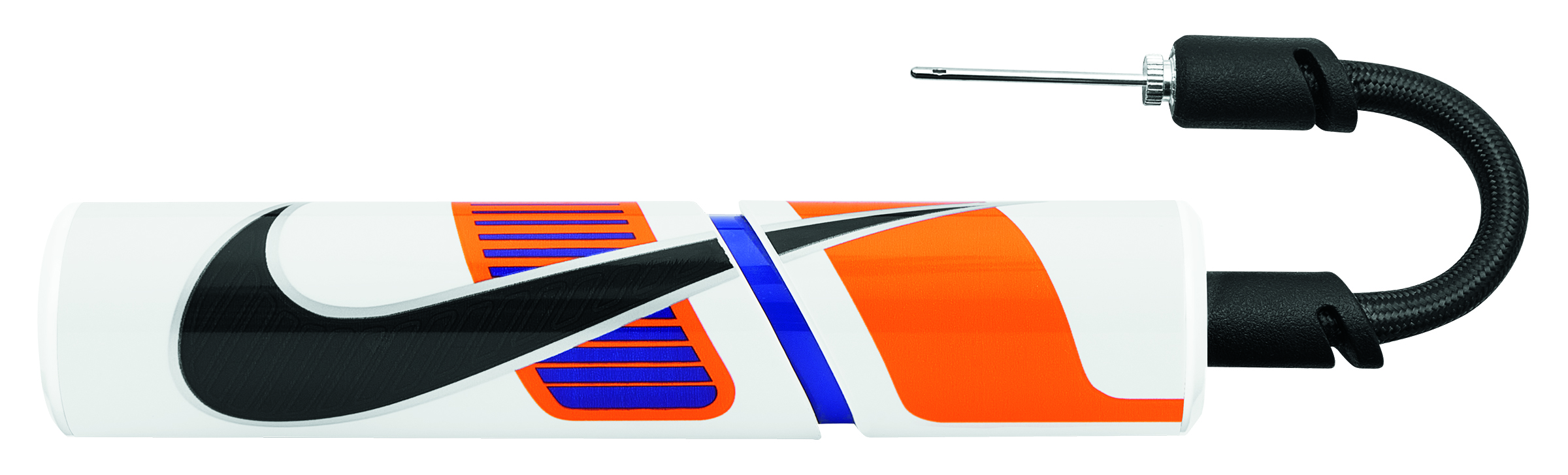 Klassische Ballpumpe in attraktivem Design und Nike Swoosh. Mit angesetztem Schlauch für erleichtertes Handling und schnelles Befüllen. Inklusive Nadelventil. 83% ABS Copolymer, 8% RB, 5% TPE, 3% ZA, 1% NL