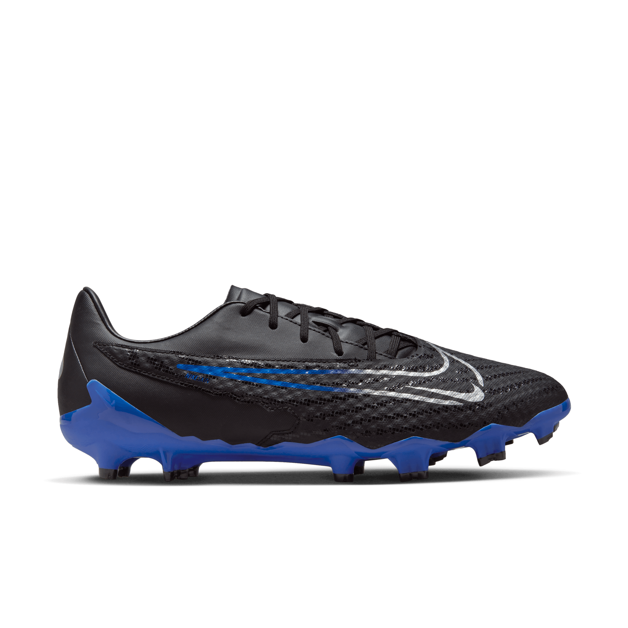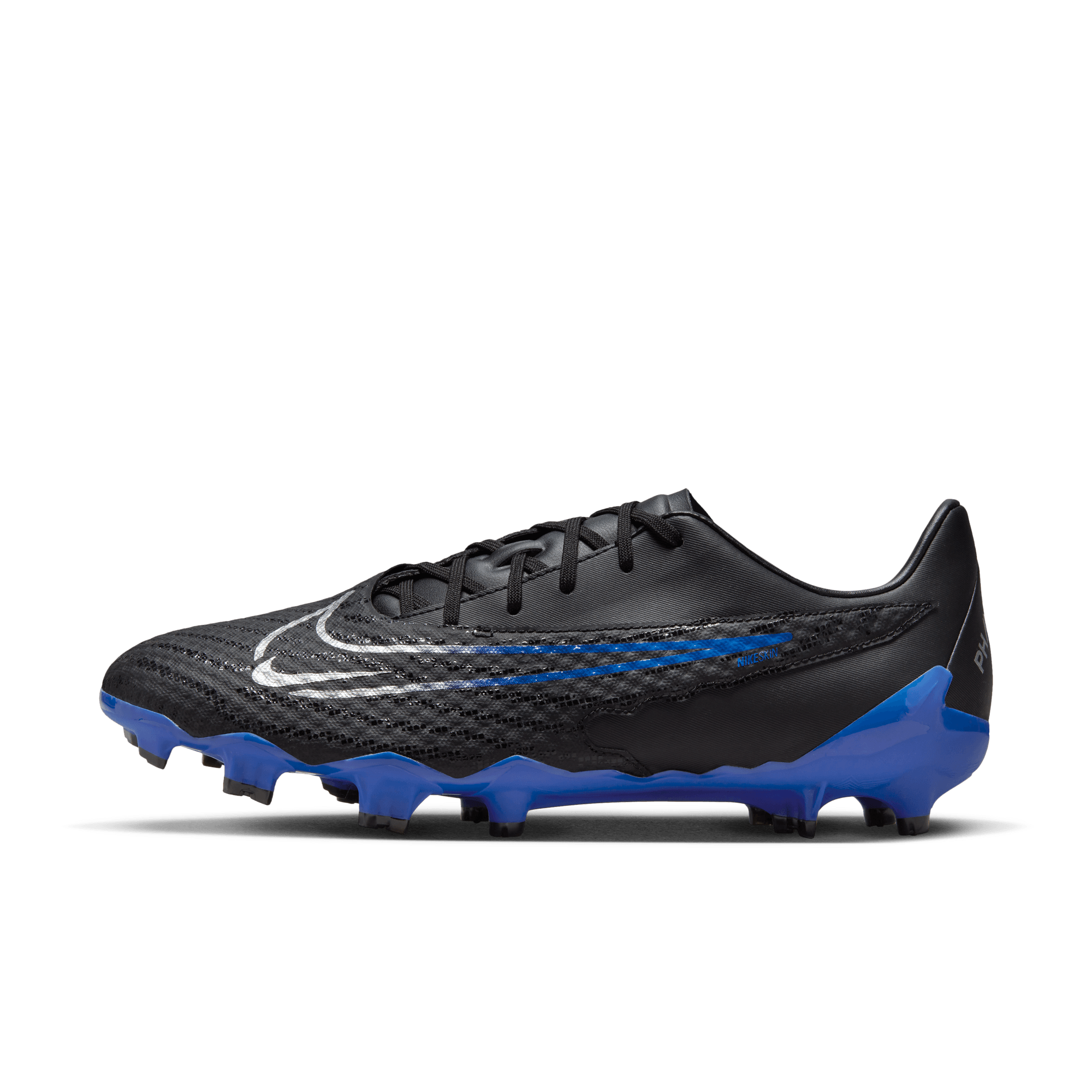 Nike Phantom GX Academy Multi-Ground Soccer Cleats Du möchtest dein Spiel auf das nächste Level bringen? Academy Schuhe geben dir das präzise Ballgefühl, das du benötigst, um deine innersten Spielinstinkte glänzen zu lassen. Mit NikeSkin und einer Mesh-Touch-Zone für verbesserte Präzision sowie einer Wendigkeitssohle, die für Laufen und Sprinten entwickelt wurde, kannst du deinen spontanen Spielmachergeist zum Ausdruck bringen. Verbessertes Ballgefühl Die erweiterte NikeSkin-Touch-Zone mit speziell entwickeltem Mesh bringt deinen Fuß noch näher an den Ball und sorgt so für bessere Kontrolle beim Dribbeln und Passen bei nassen und trockenen Bedingungen. Das Obermaterial ist weich und fast strickähnlich, während die Kontaktzone an der Innenseite des Schuhs erhöht ist, um ein noch besseres Ballgefühl zu gewährleisten. Konturierte Passform für Tragekomfort Asymmetrie in der Ferse sorgt für Tragekomfort. Weiche Elemente in der Ferse ermöglichen ein einfaches Eintragen, reduzieren Hautirritationen und Druck, ohne dabei an Stabilität und Struktur einzubüßen. Traktion auf dem Spielfeld Die neu entwickelte Kombination aus konischen und Tri-Star-Stollen ermöglicht schnelle Richtungs- und Bewegungswechsel und ein einfaches Abrollen. Dadurch kannst hast du guten Grip im Gras für schnelles Beschleunigen. More Details. Für den Einsatz auf Rasen und Kunstrasen. Gedämpfte Innensohle.