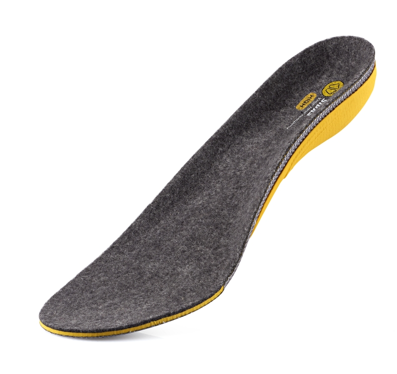 Einlegesohlen speziell für Füße mit hohem Fußgewölbe. Oberseite aus idealem Mischmaterial: Synthetikfasern (40%) garantieren Strapazierfähigkeit und Langlebigkeit, Merinowolle (60%) wirkt geruchsmindernd und sorgt für optimale Wärmeregulierung.