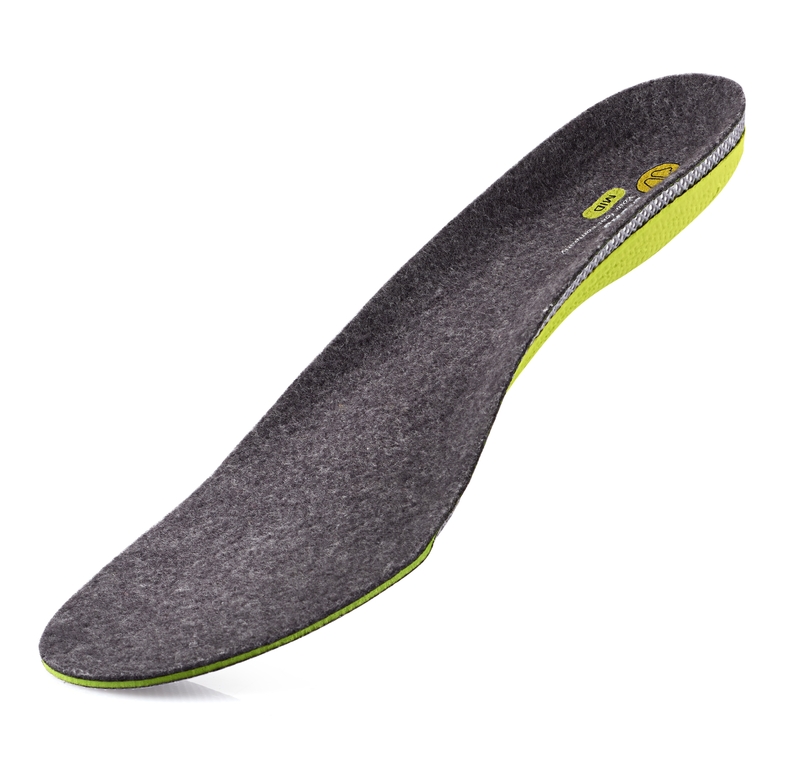 Einlegesohlen speziell für Füße mit normalen Fußgewölbe. Oberseite aus idealem Mischmaterial: Synthetikfasern (40%) garantieren Strapazierfähigkeit und Langlebigkeit, Merinowolle (60%) wirkt geruchsmindernd und sorgt für optimale Wärmeregulierung.
