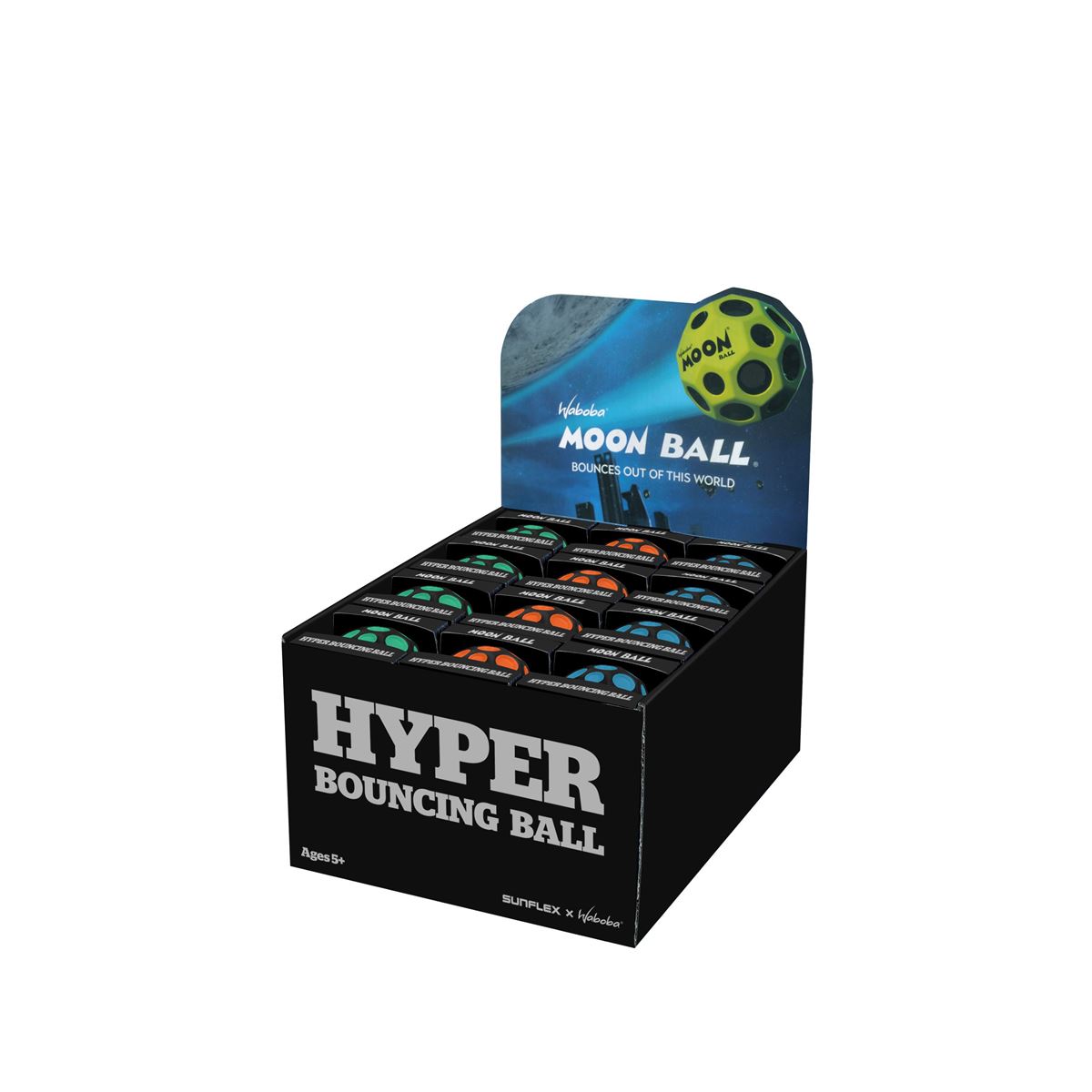 Der sunflex x Waboba MOON ist der galaktische Ball, der bis ins Universum springt. Ultraleichtes Gewicht und eine Sprungkraft wie sonst nichts auf der Erde.